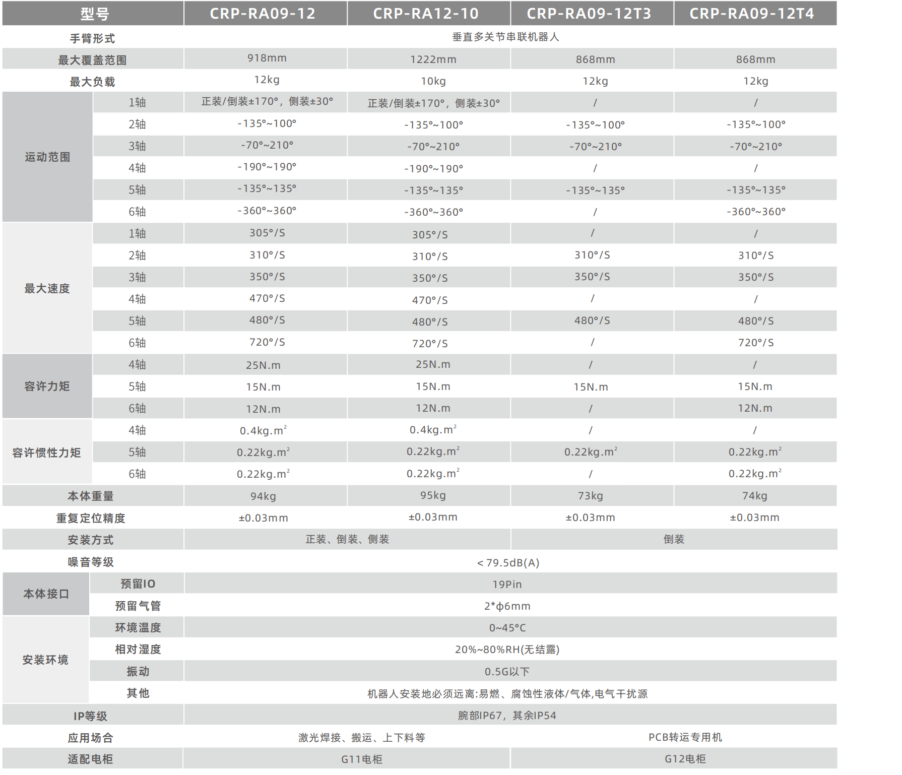 高速高精,效率更高。整机采用全铝机身设计,较同级别产品质量更轻,RA09-12系列相比RA09A-07系列左右速度提高了30%,标准门型轨迹0.42S,重复定位精度士0.03mm,实现快速生效,提高生产产能。
